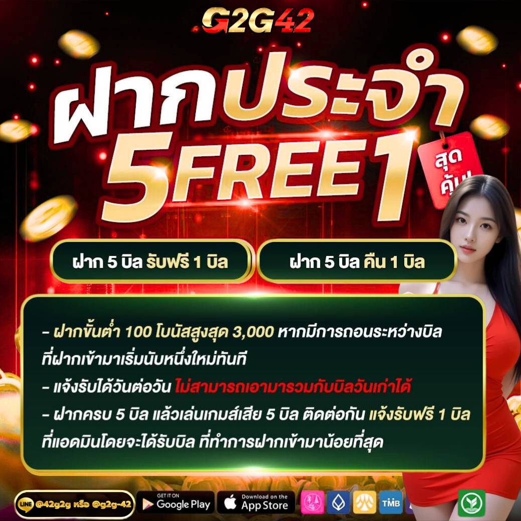 • เมื่อฝากครบ 5 บิล และเล่นเกมเสียครบ 5 บิลติดต่อกัน