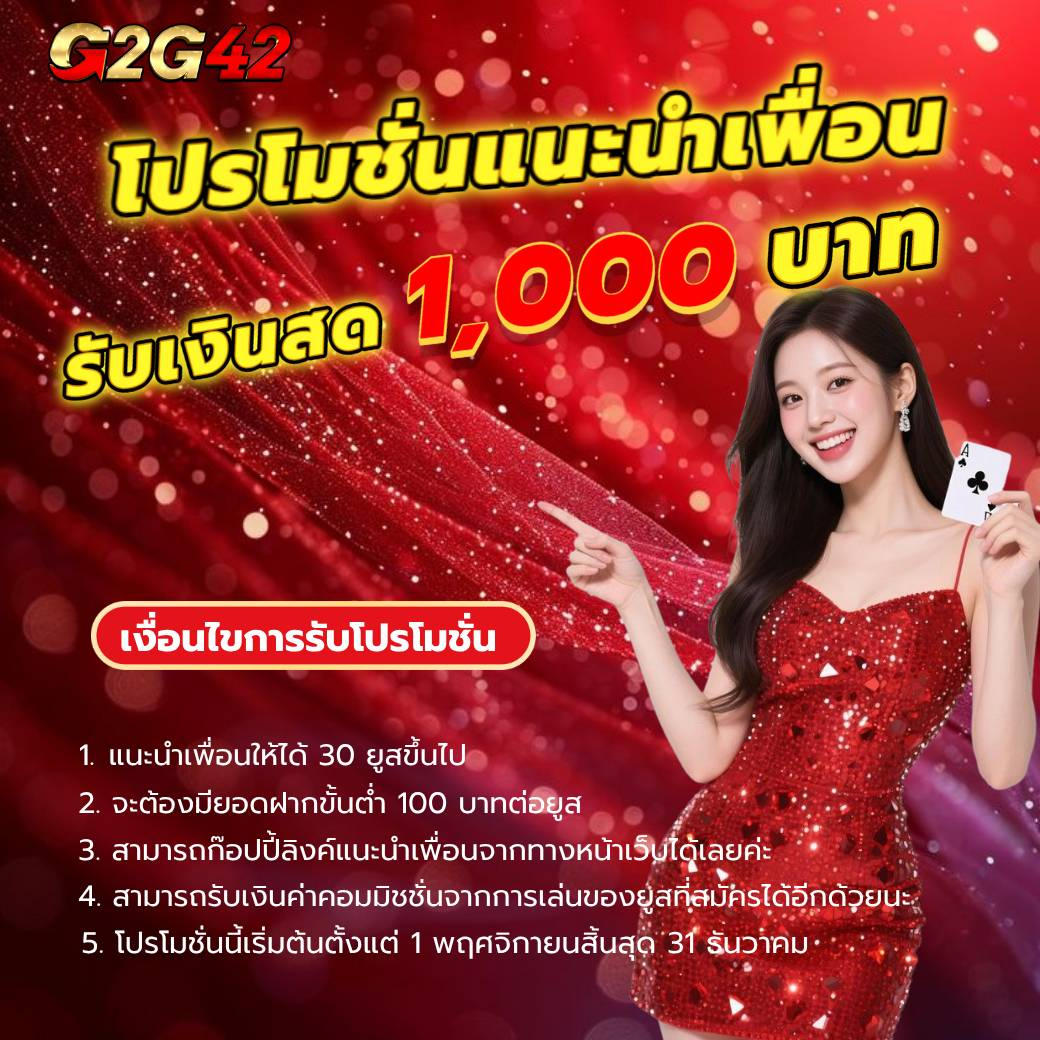 โปรแนะนำเพื่อน รับเงินสด1000 บาท